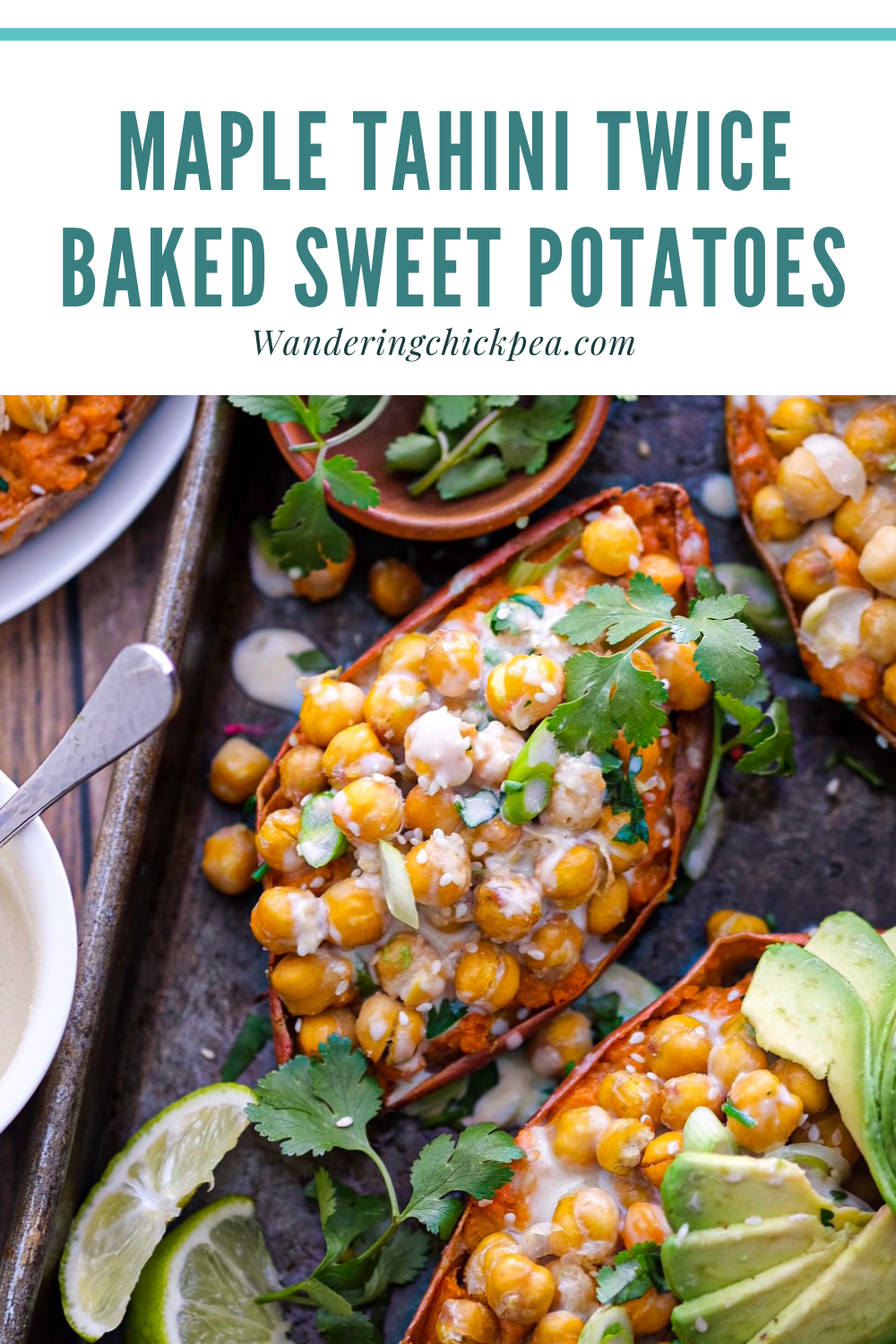 Vegan Maple Tahini Twice Baked Sweet Potatoes with Crispy Chickpeas